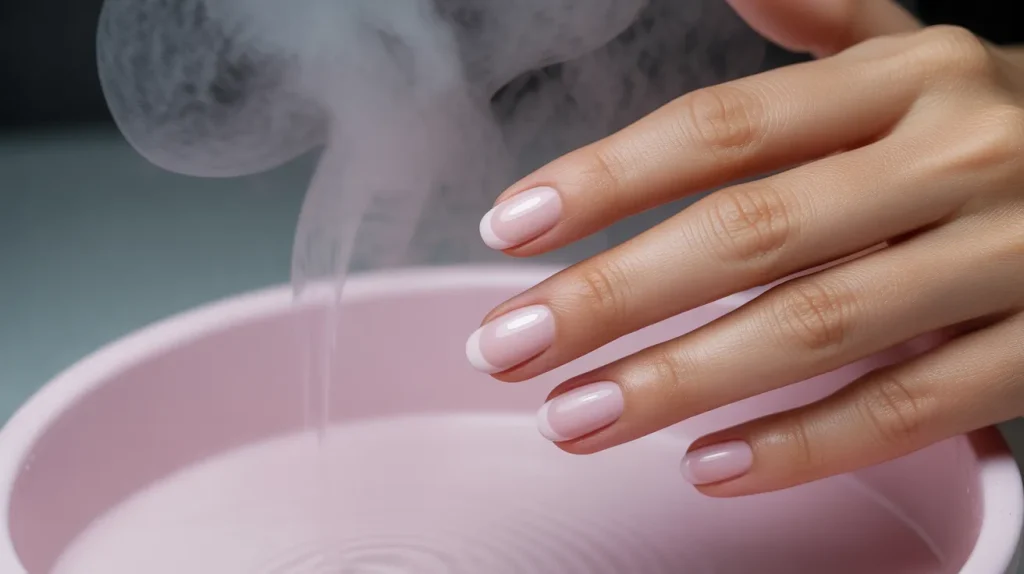 Fresh nail polish doesn’t like heat. Avoid long showers, hot water, or washing dishes right after painting your nails. Warm water makes the layers soft, making chips more likely. Let your nails fully cure for at least two hours.