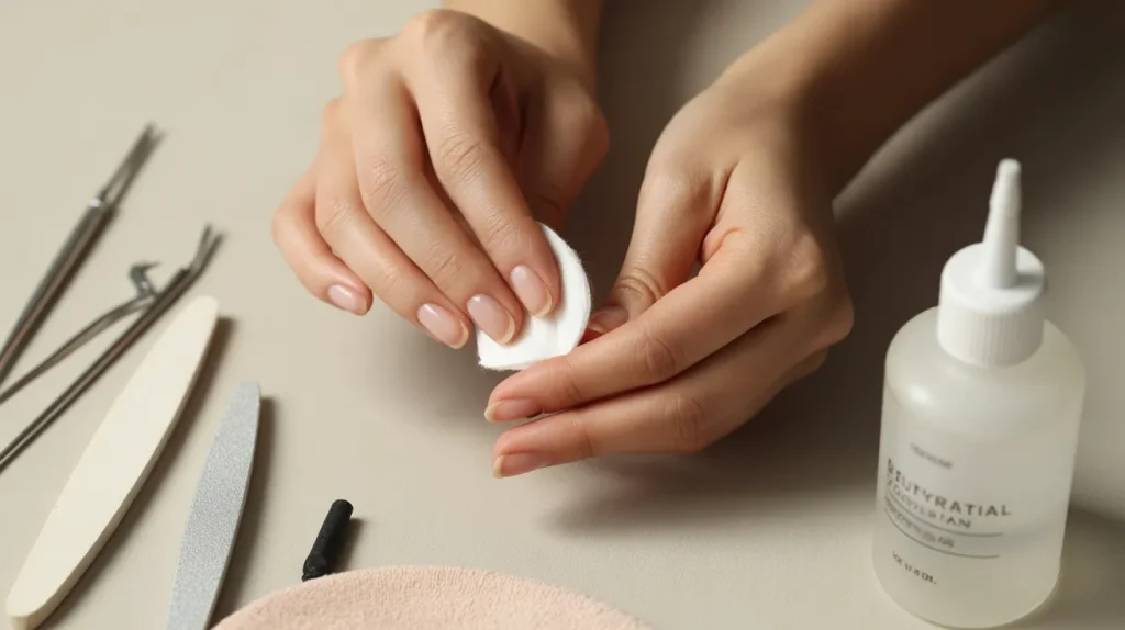 Good nail prep is the secret behind every long-lasting manicure. Start with clean nails and remove oil, dust, or old polish. Wash your hands, dry them well, and use a gentle nail dehydrator or rubbing alcohol to remove any remaining oils. When your nails are dry and smooth, polish sticks better and stays longer.