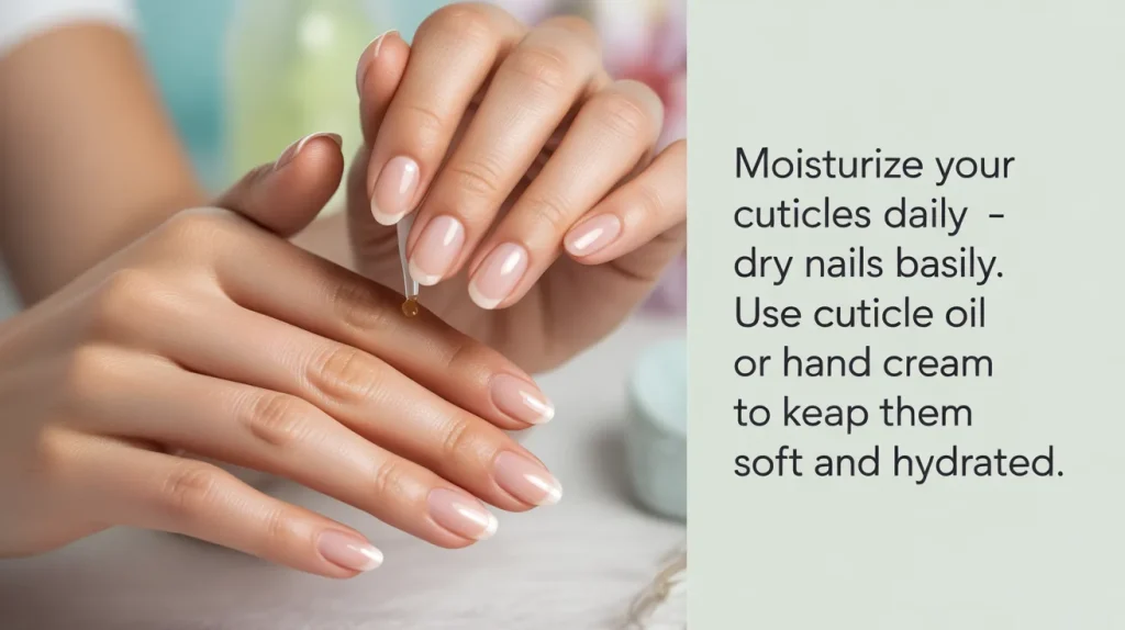 A shiny, strong top coat locks everything in. Use a long-lasting, chip-resistant top coat and apply it to the entire nail. Reapply a thin top coat every 2–3 days to refresh the shine and keep your manicure protected. This keeps your nails looking salon-fresh.